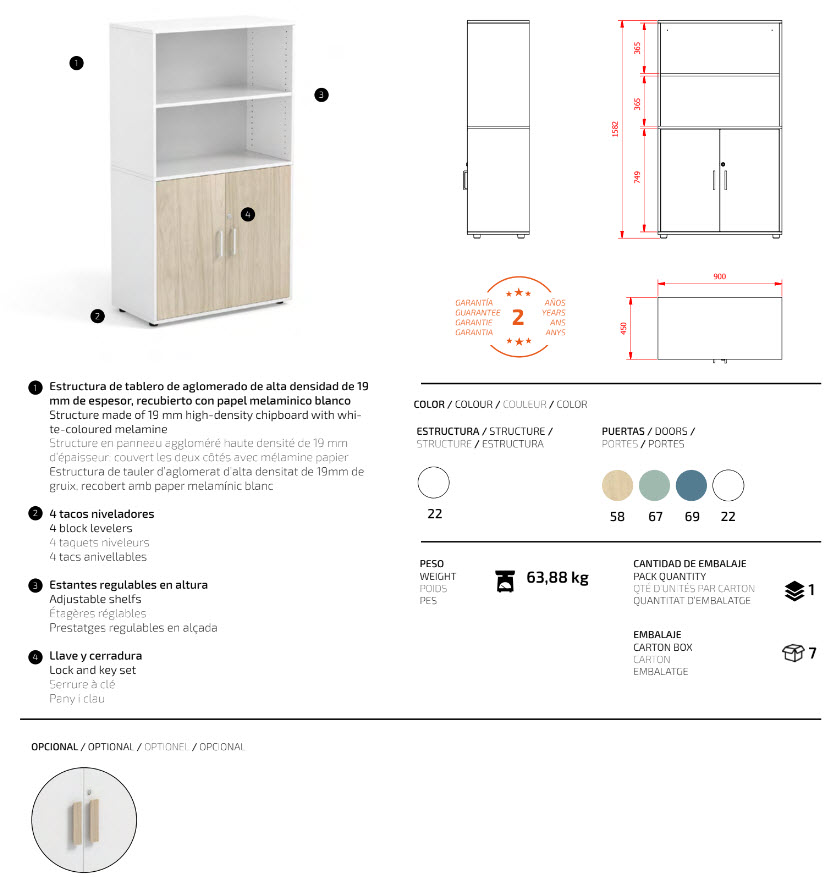 Afmetingen: 90 x 45 x 158 cm (L x D x H)