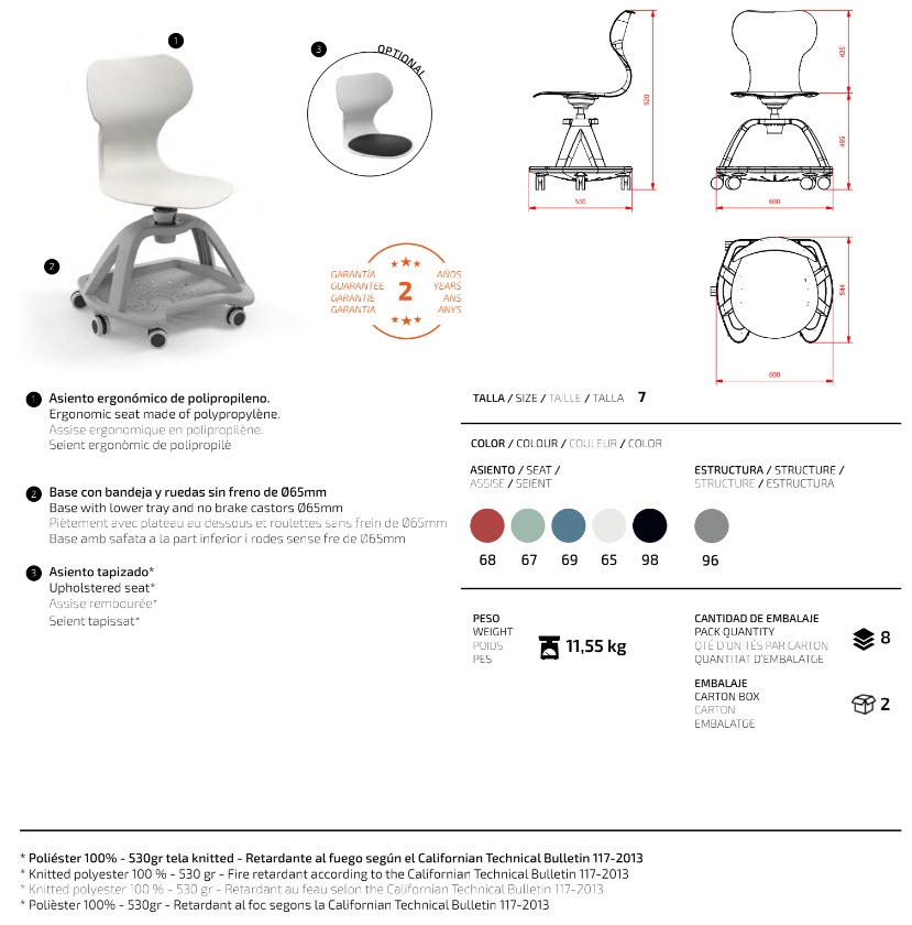 Sierlijk gevormde ergonomische kunststof zitschaal met ingewerkte handgreep
